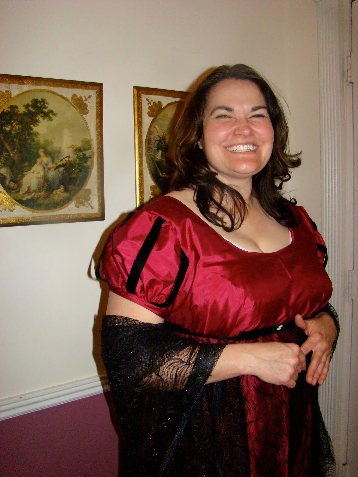 So Grace has always wanted a Pride and Prejudice dress so when she said she needed to find a red dress to wear for her sister's wedding I convinced why not kill two birds with one stone.. So here is the result.